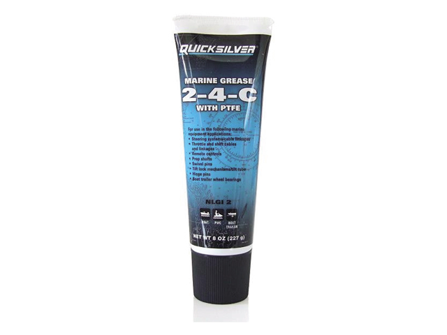 Quicksilver 2-4-C to smar wielozadaniowy, który wytrzymuje ekstremalne tarcie i nie ulega zniszczeniu po zmieszaniu z wodą. Obraz po prawej pokazuje, jak Quicksilver 2-4-C zachowuje swoją konsystencję, podczas gdy inne smary (pokazane po lewej) rozkładają się w obecności wody. Poniższa tabela przedstawia ogólne punkty smarowania i interwały dla napędu rufowego lub wewnętrznego. Przestrzegaj harmonogramu konserwacji określonego silnika zgodnie z instrukcją obsługi.